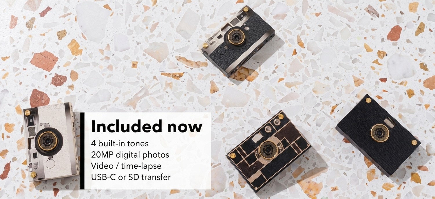 Paper Shoot is built with a real digital sensor, durable materials, and a modular system that lets you change shells, add features, and keep using the same camera for years.
